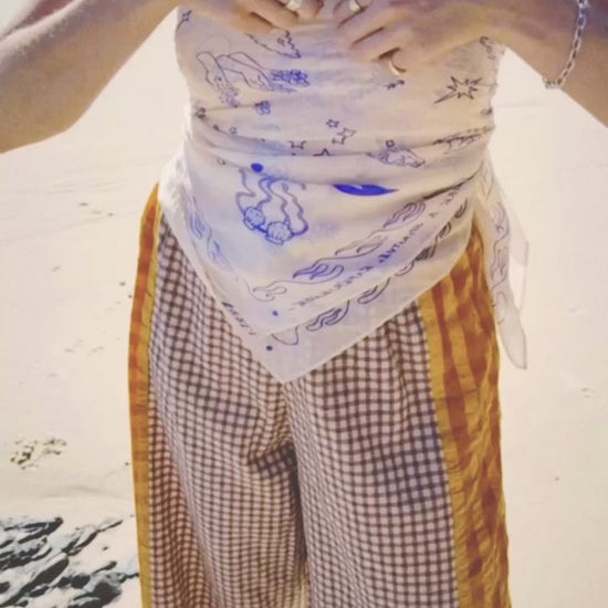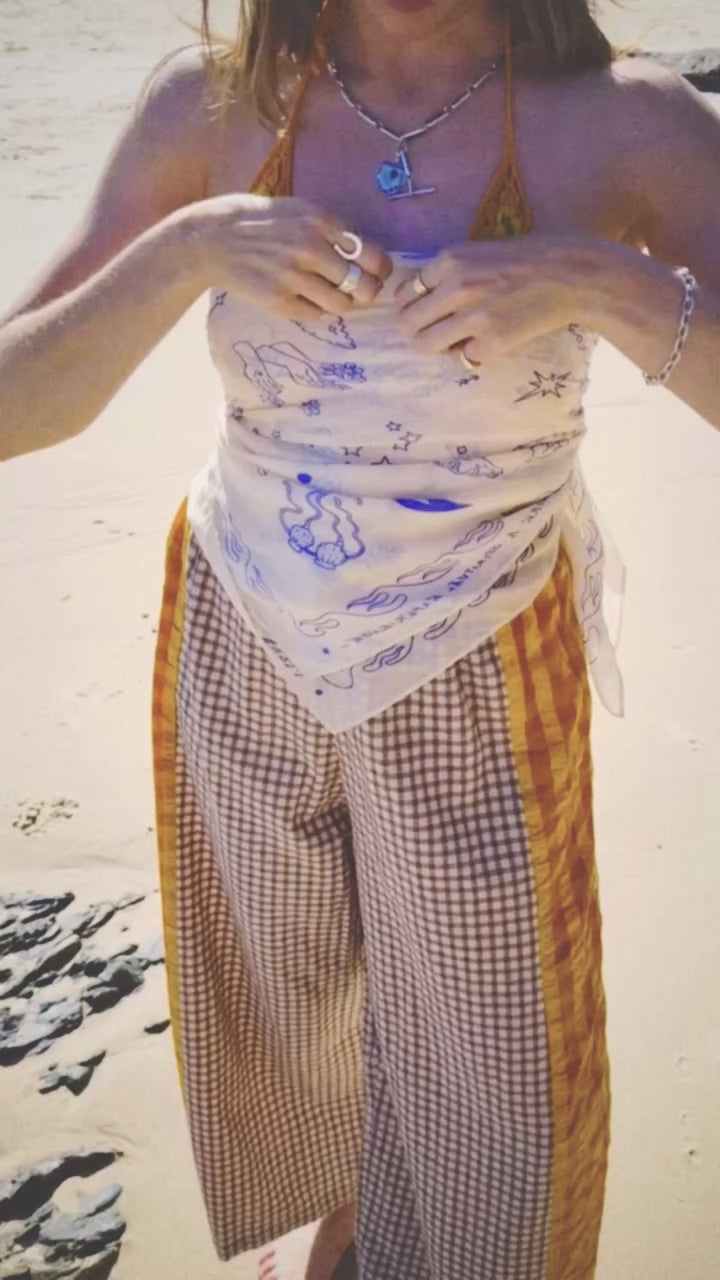 Easty goes oversized with these artistic sarongs. Classic hand-drawn flash tattoo illustrations printed on 100% silk chiffon. Created in considered, limited runs - these unique beauties may be a one-time thing. Perfect as a bandana, sarong, top or wall hanging.