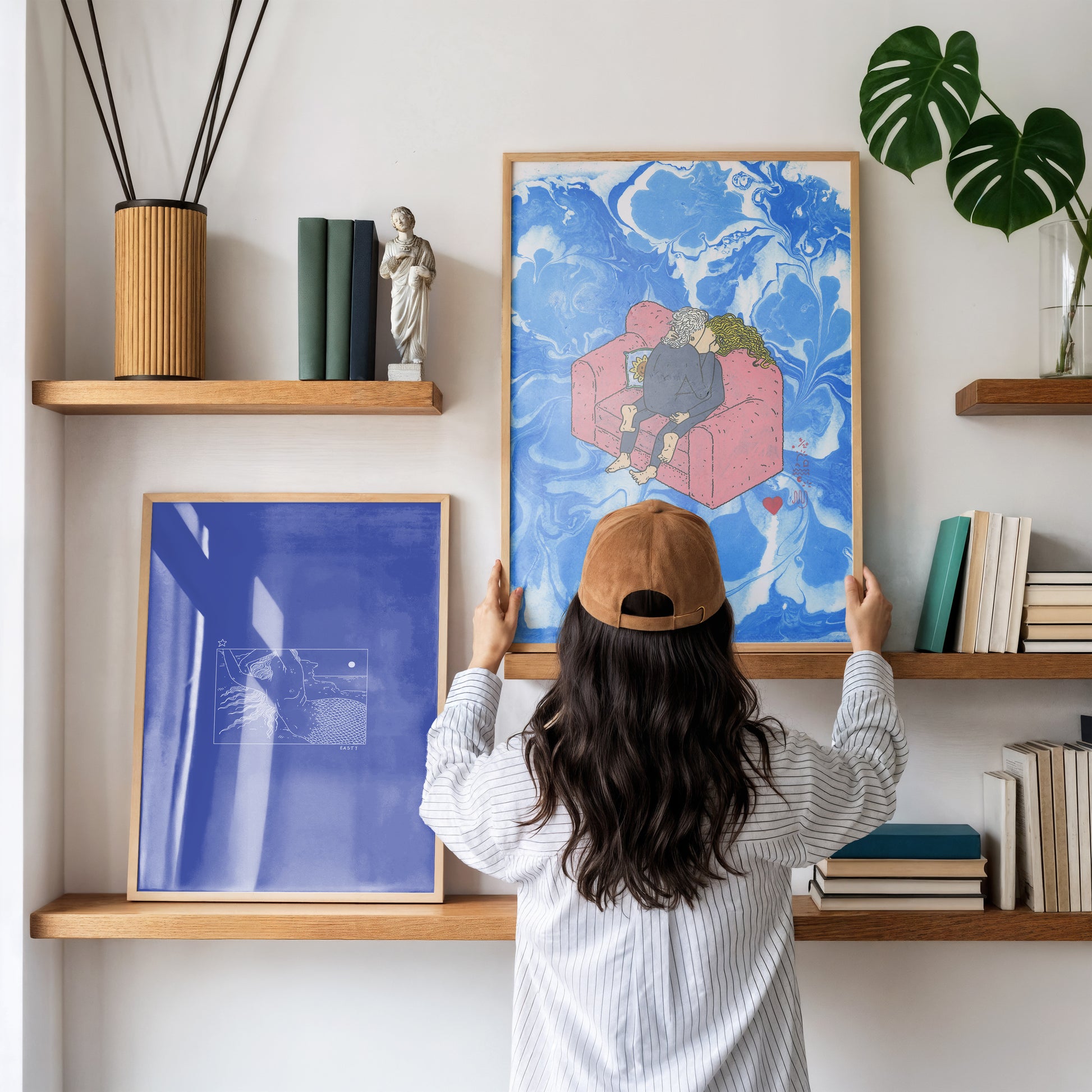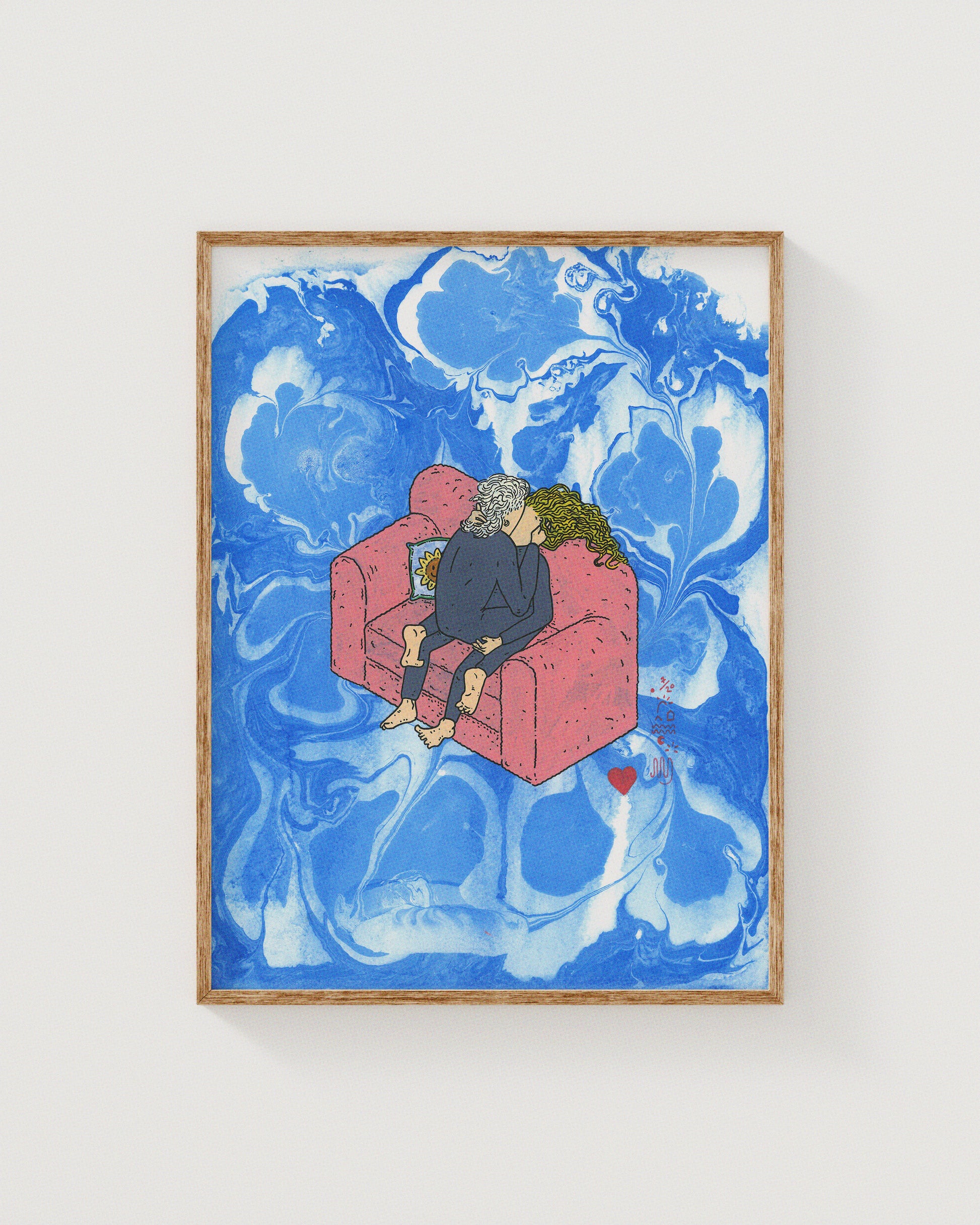 Giclee reproduced print on Ilford Fine Art Velvet paper 260gsm. A3 (420×297mm) or A2 (420×594mm) sizes. Made with pigment based ink on archival quality paper. Accessible and created with longevity in mind.