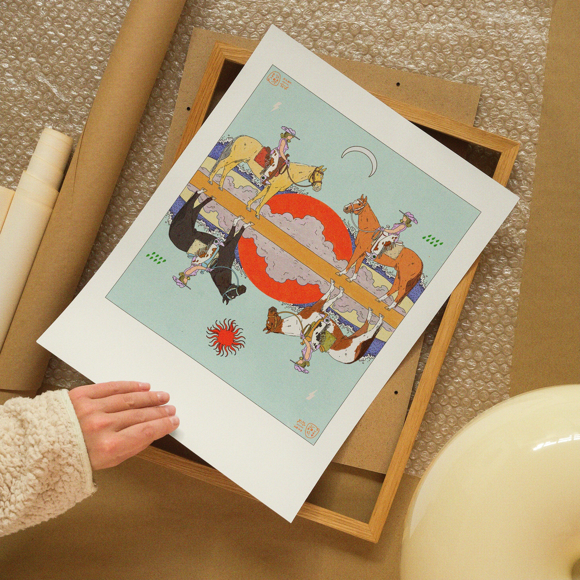 This artwork was created digitally on Procreate with specialty brushes and my individually designed textures and lines. It’s then printed by me using a very, heavy, very large printer on professional grade, archival paper and packaged by hand. All my prints are shipped in heavy duty, reinforced cardboard envelopes and biodegradable, plastic free slips.