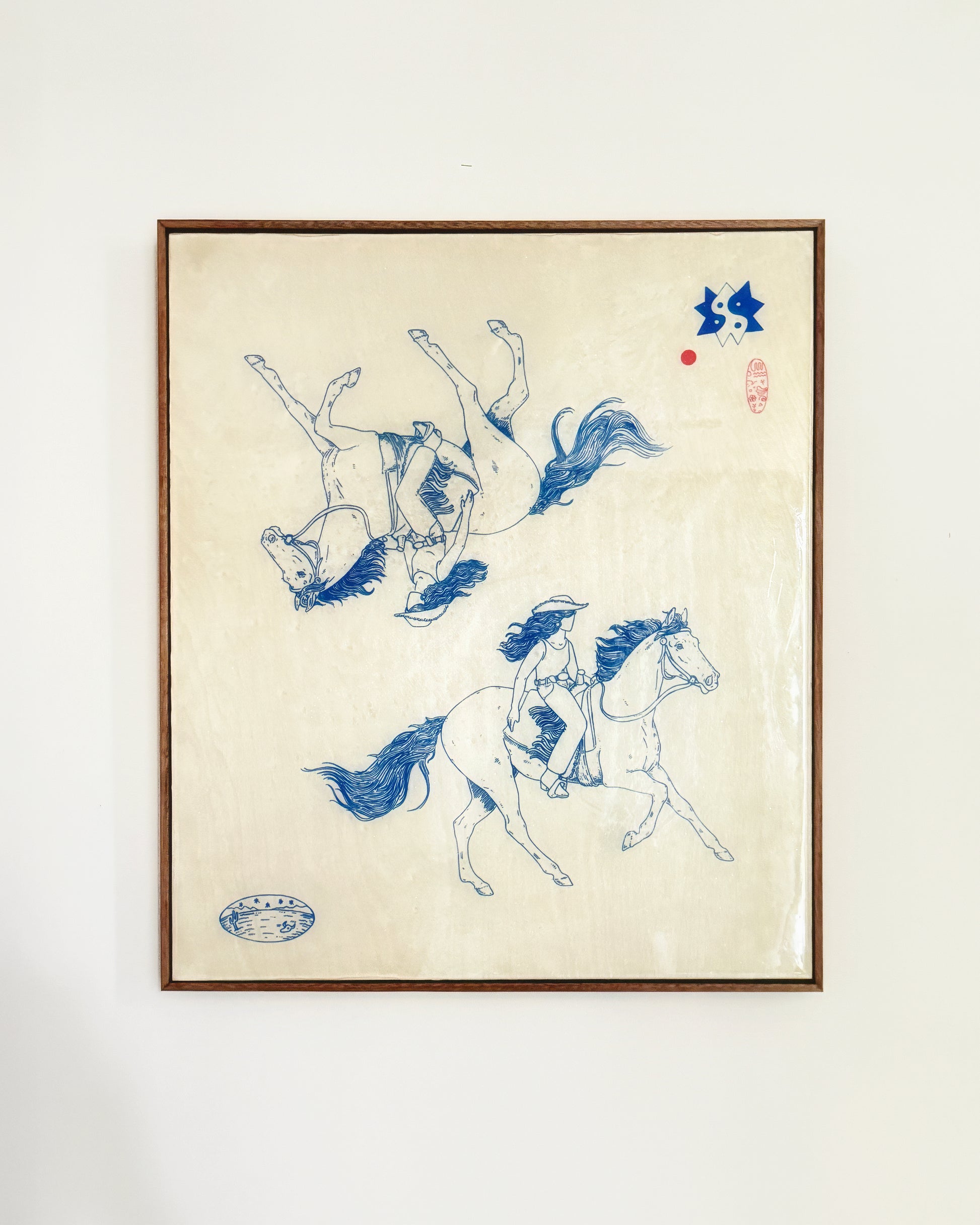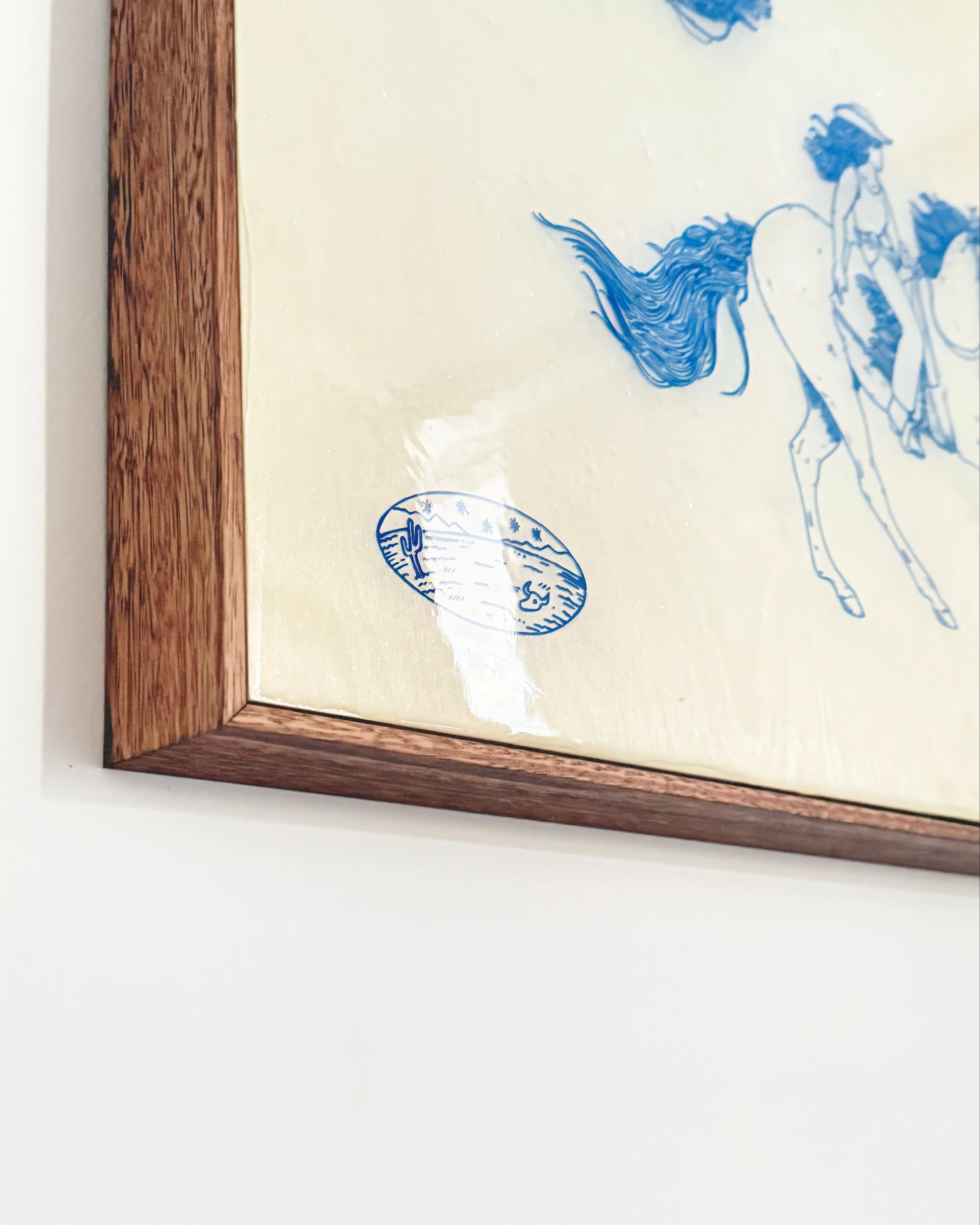 This artwork was created by sketching out the design on the panel, which is then cleaned up and covered with a thin layer of pigmented resin, resulting in a subtle shimmer. The artwork itself is then created with Posca Pens onto the hardened resin, then sealed with spray, and a second layer on resin. The result is a unique keepsake, designed for longevity.