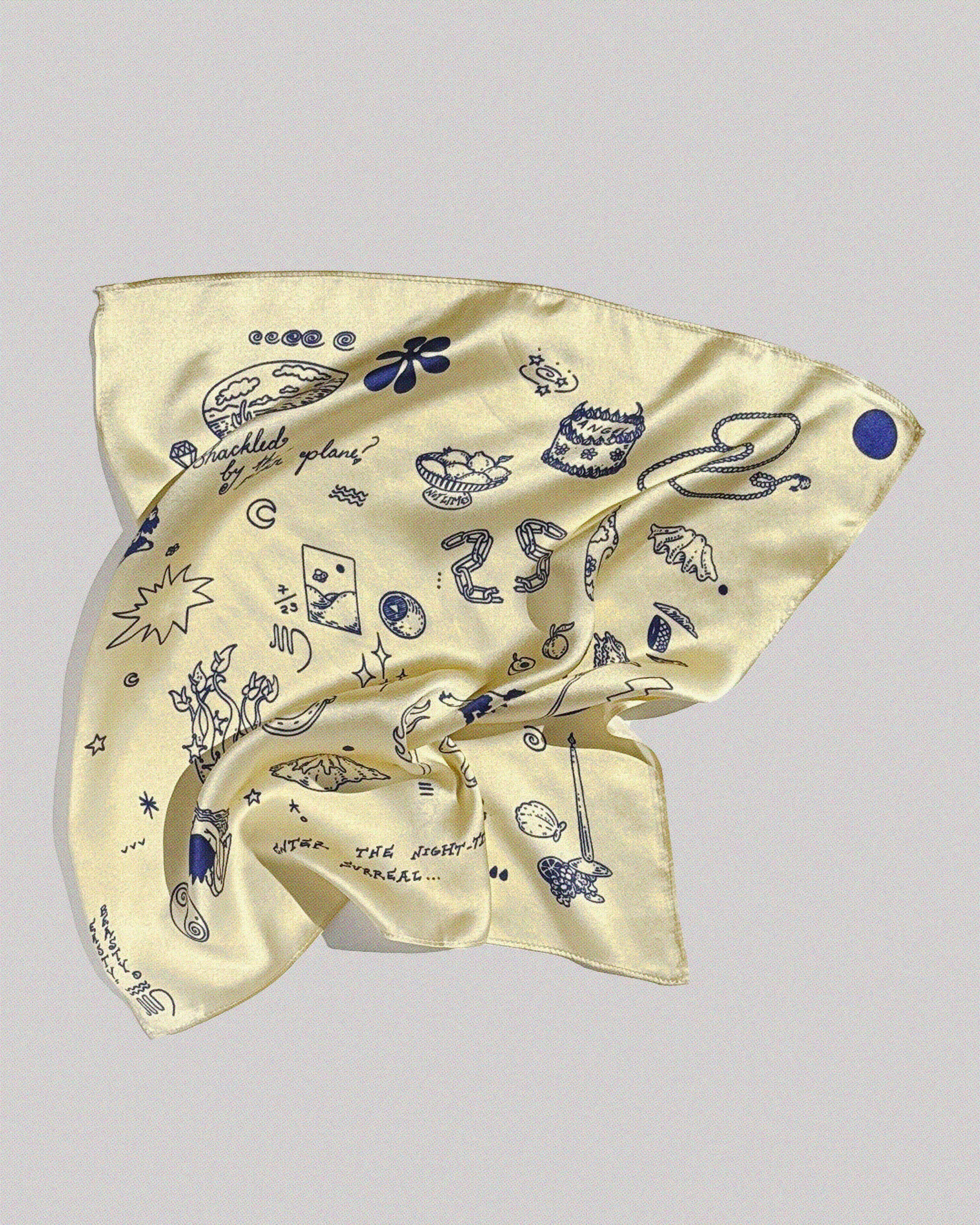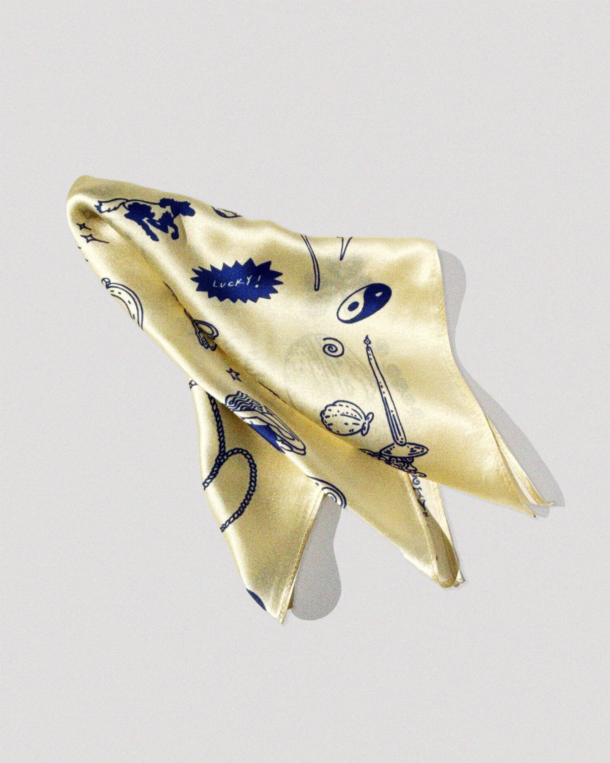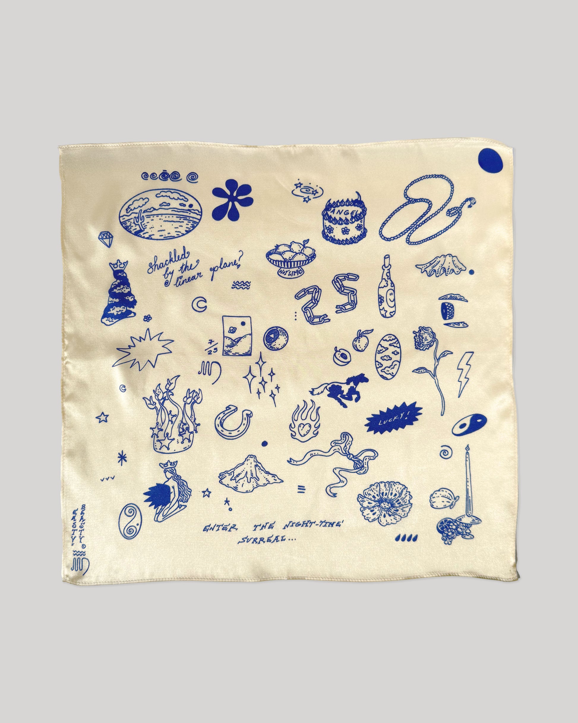 Easty in silk sheets. Classic hand-drawn flash tattoo illustrations printed on 100% silk. Created in considered, limited runs - these unique silky beauties may be a one-time thing.