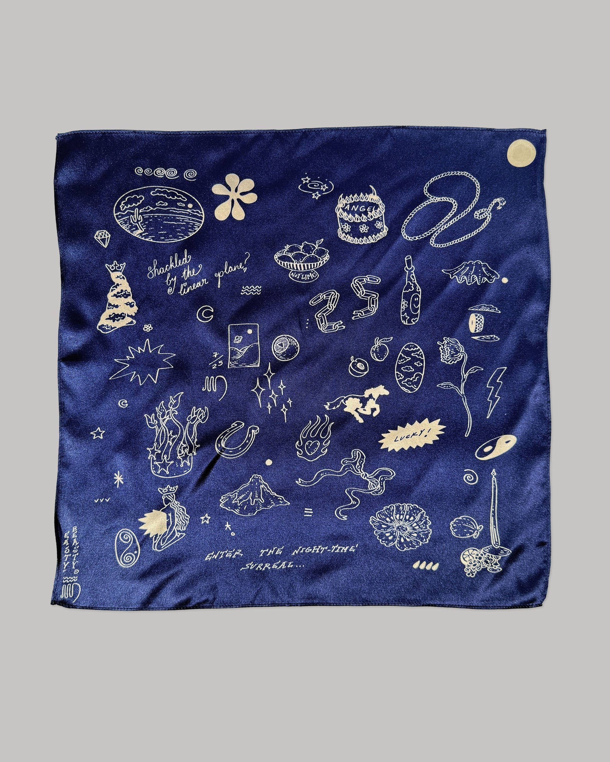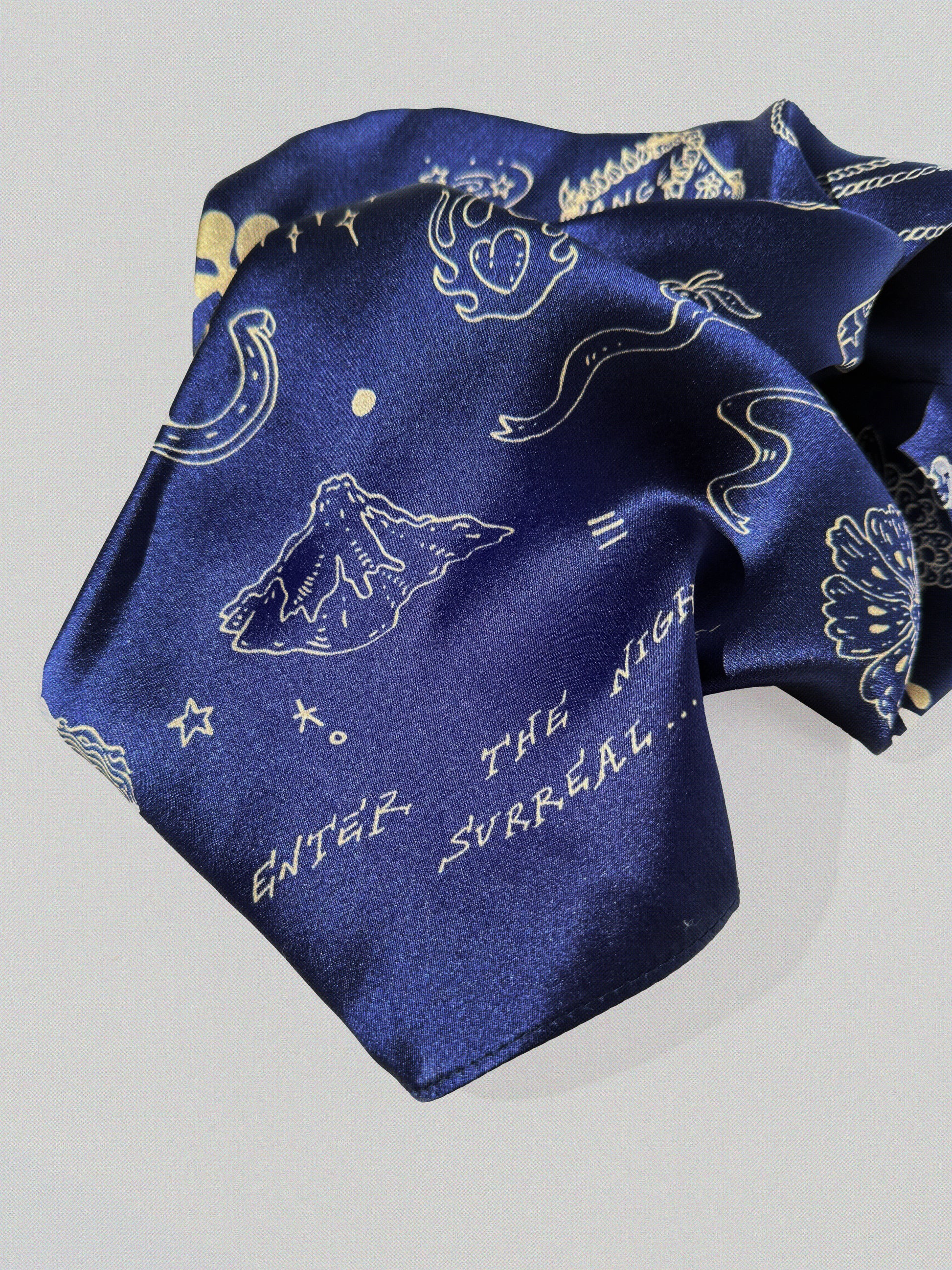 Easty in silk sheets. Classic hand-drawn flash tattoo illustrations printed on 100% silk. Created in considered, limited runs - these unique silky beauties may be a one-time thing.