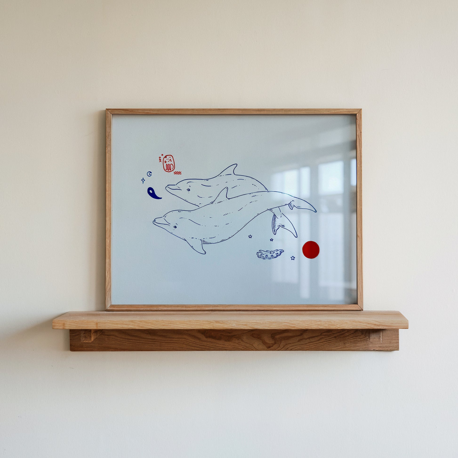 This original captures two dolphins suspended in a vast ocean. Drawn by hand in the Easty studio, the linework is intentionally minimal, allowing negative space and subtle texture to carry the mood. The composition is both light and grounded.