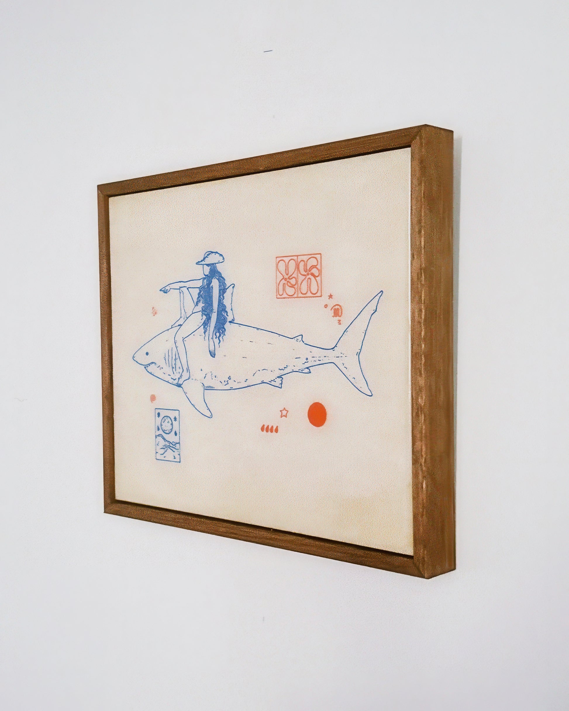 The classic shark rider motif, done for the first time ever in glittery resin. The perfect piece for guaranteed compliments in any space.